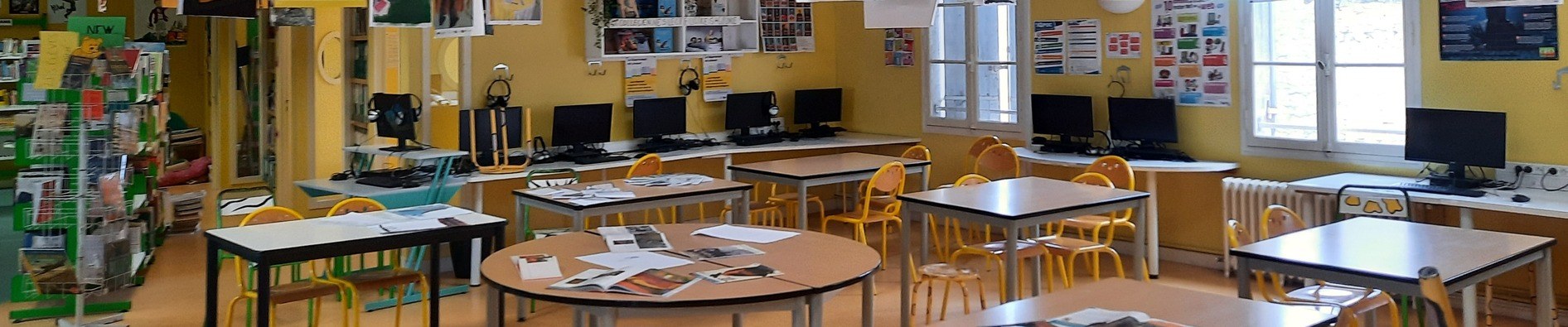 Le CDI est un vaste centre de ressources informationnelles constitué d'un espace de travail, d'un espace de lecture, de deux box de travail et d'une salle d'archives.