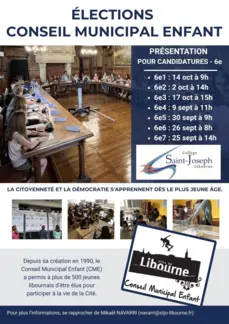 La ville de Libourne a mis des créneaux de visite de la salle du conseil et/ou des mariages à disposition des élèves de 6e afin de leur présenter le fonctionnement du Conseil municipal enfant.