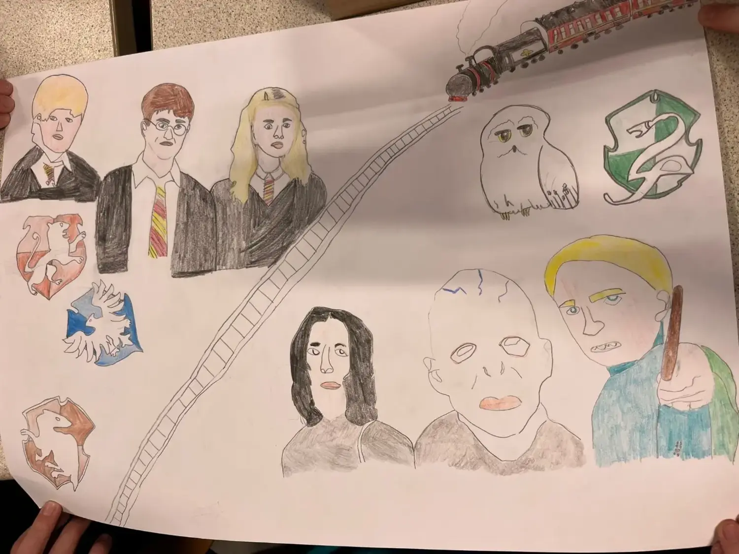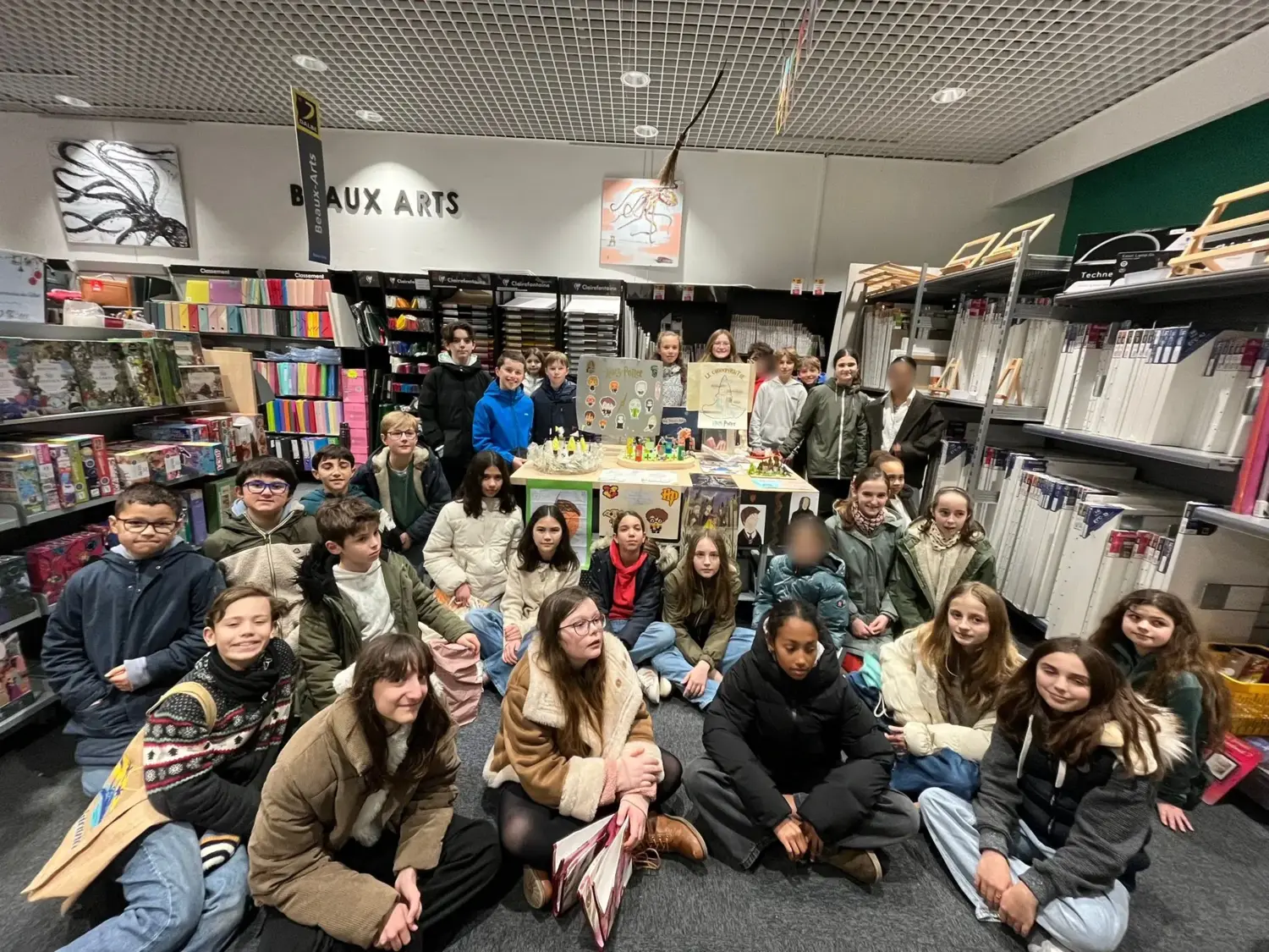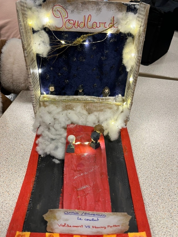 Les élèves de 6e4 ont déposé leurs œuvres et réalisations à la librairie Madison à Libourne dans le cadre de la nuit des livres Harry Potter du 5 au 7 février 2026 en partenariat avec Gallimard. Un élève de la classe remportera à l’issue des votes un livre offert par la librairie Madison à Libourne et Gallimard : le chemin de traverse en version pop up.