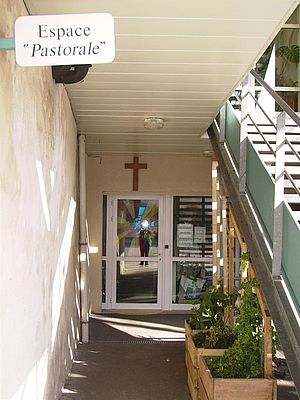 L’espace « pastorale » se situe sous le grand escalier. C’est un lieu d’accueil, d’écoute, de partage et de prière pour tous ceux qui le souhaitent, dans un climat chaleureux et de confiance.